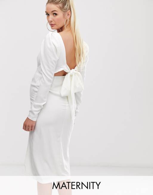 Queen Bee - Vestito midi premaman bianco a maniche lunghe con schiena scoperta