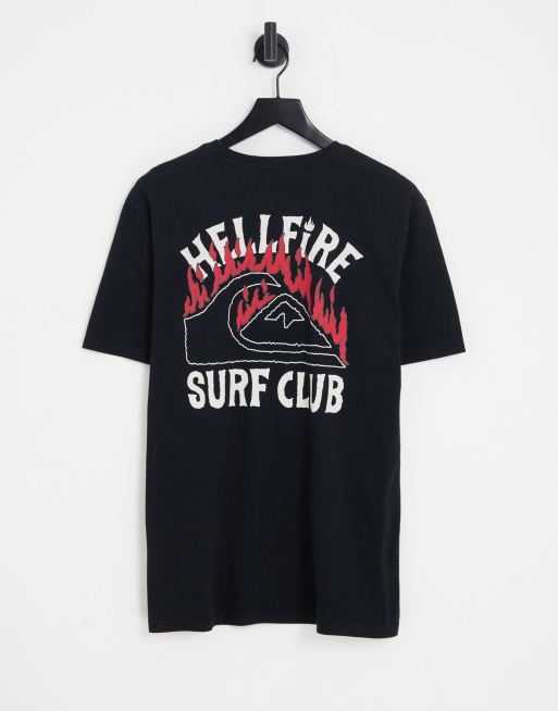 Quiksilver X Stranger Things - T-shirt nera con scritta "Hell Fire Surf Club"