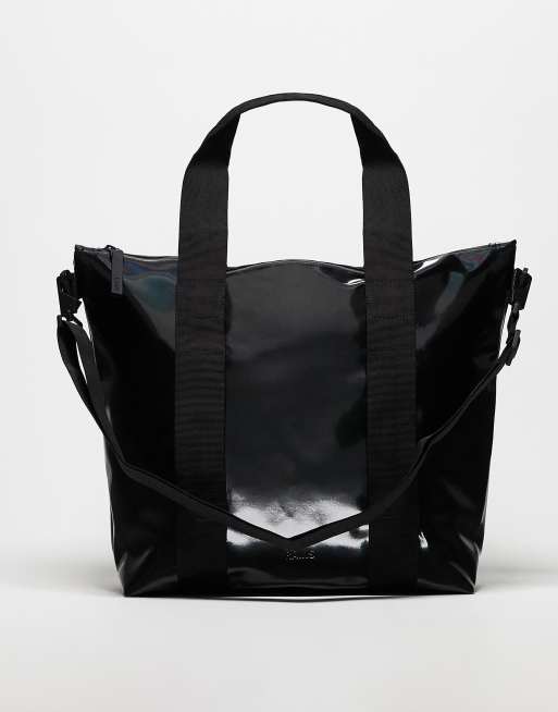 Rains - 14160 - Mini borsa shopping nera lucida impermeabile