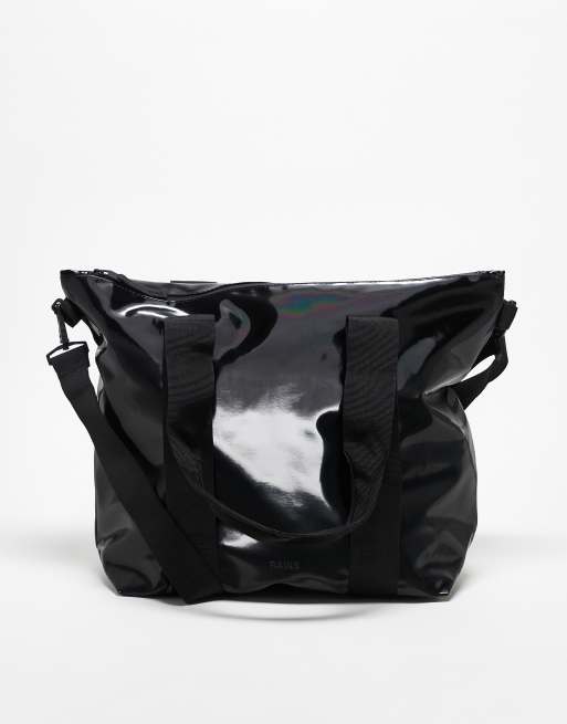 Rains - Borsetta shopping unisex impermeabile nera lucida con tracolla