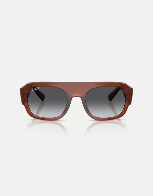 Ray-Ban - Irregular - Occhiali da sole marrone trasparente con lenti grigie polarizzate