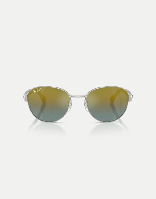 Ray-Ban - Occhiali da sole argento con lenti oro specchiate polarizzate