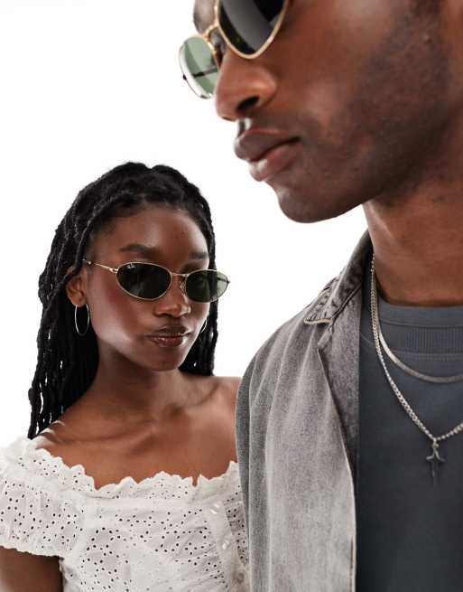 Ray-Ban - Occhiali da sole ovali in metallo oro