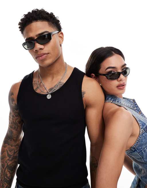 Ray-Ban - Occhiali da sole sottili rettangolari neri
