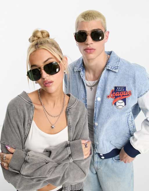 Ray-Ban - Occhiali da sole squadrati anni '70 neri e oro