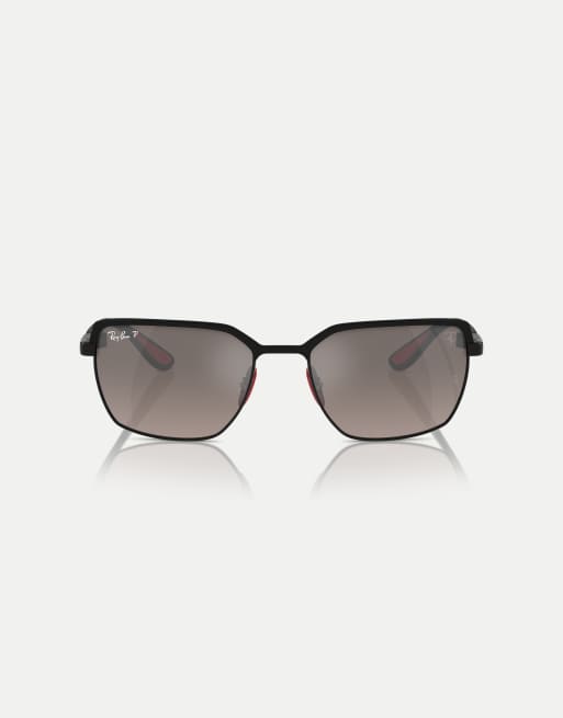 Ray-Ban - Rb3743m Scuderia Ferrari Collection - Occhiali da sole squadrati nero su nero con lenti polarizzate grigie specchiate