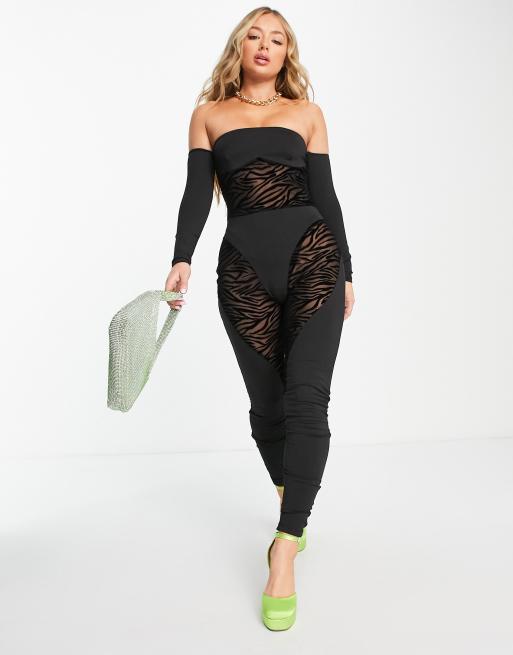Rebellious Fashion - Tuta jumpsuit in rete con stampa zebrata e cut-out