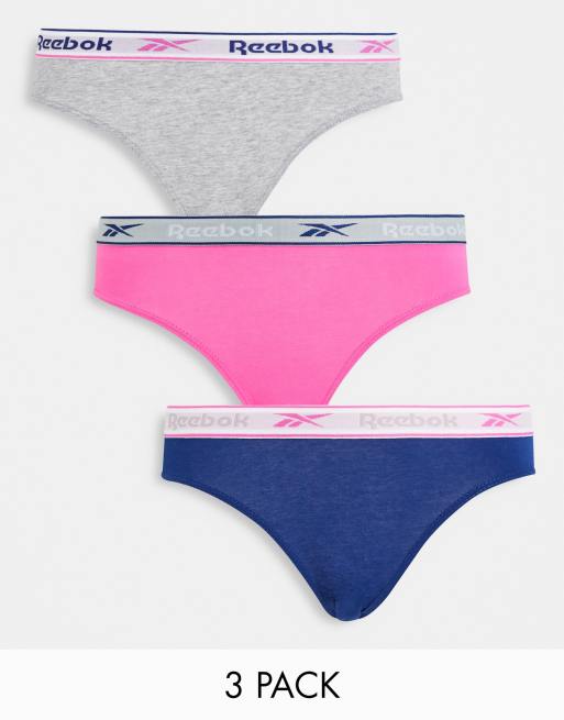 Reebok - Jonna - Confezione da 3 slip rosa, blu e grigi