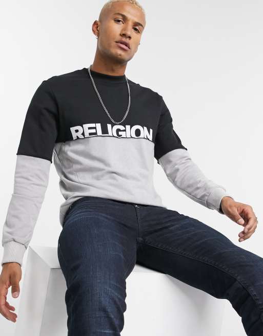 Religion - Felpa con stampa sul retro cut and sew grigia/nera