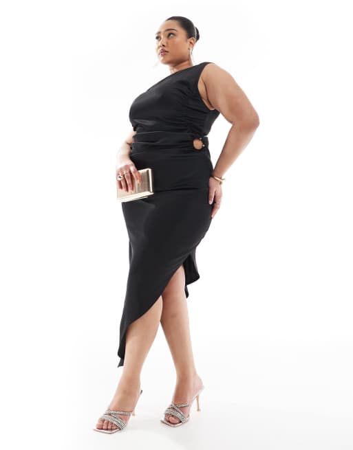 Esclusiva Renee Studio Plus - Vestito midi asimmetrico nero con anello e cut-out