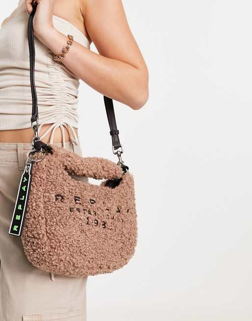 Replay - Borsa da spalla beige con logo