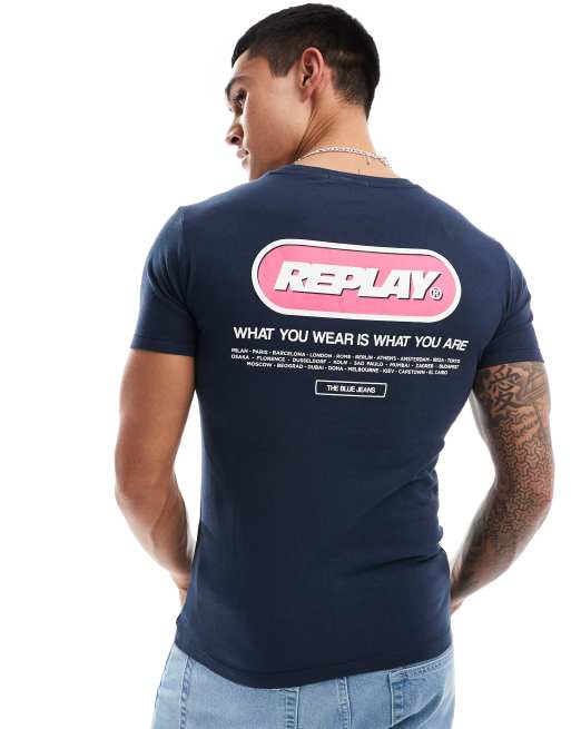 Replay - T-shirt blu con logo
