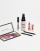 - Contiene una palette di ombretti, un eyeliner, un rossetto, una matita labbra, una colla per sopracciglia e uno spray fissante