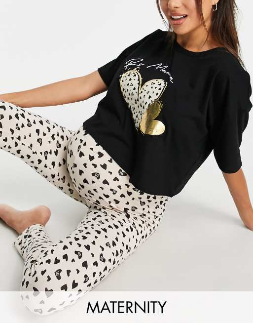 River Island Maternity - Pigiama beige con stampa a cuori