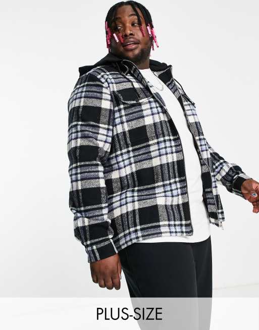 River Island Big & Tall - Camicia blu navy a quadri con cappuccio