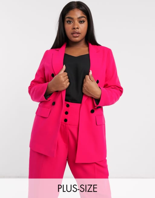 River Island Plus - Blazer rosa con bottoni in velluto