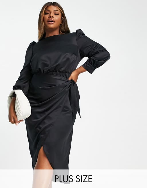 River Island Plus - Vestito midi avvolgente in raso nero