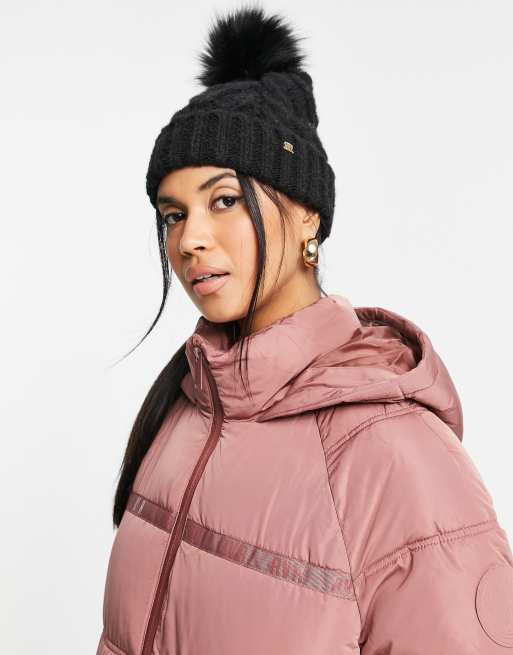 River Island - Berretto in maglia a trecce nero con pompon