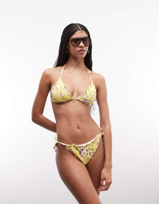 River Island - Bikini in pizzo giallo con stampa di margherite