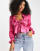 River Island - Blusa in raso rosa jacquard con laccio