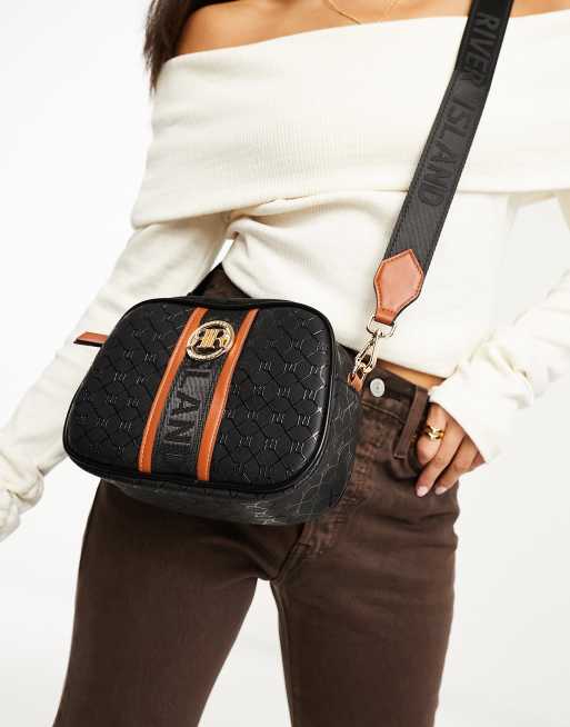 River Island - Borsa nera con tracolla e monogramma