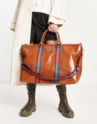 River Island - Borsa shopping marrone con stampa effetto coccodrillo e fascia a contrasto