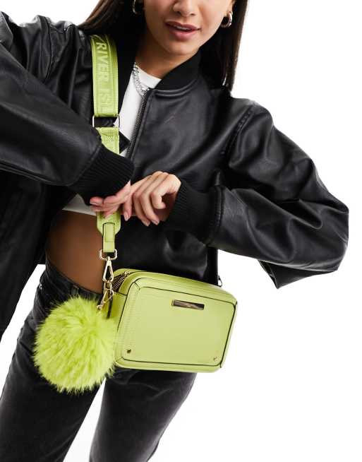 River Island - Borsa verde lime con pompon