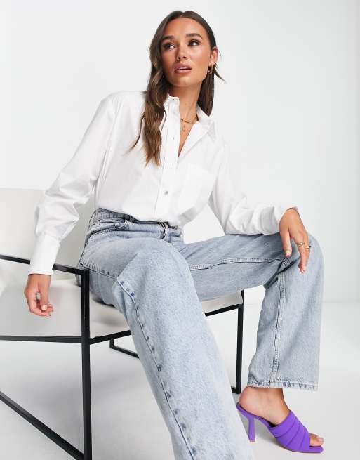 River Island - Camicia in popeline bianco con incrocio sul retro