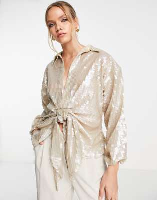 River Island - Camicia oro con paillettes allacciato sul davanti