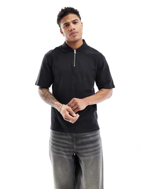 River Island - Camicia polo blu con colletto con zip
