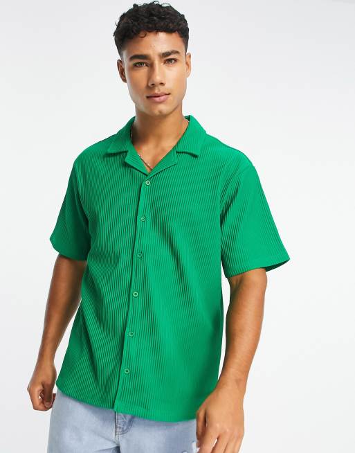 River Island - Camicia verde plissé con rever