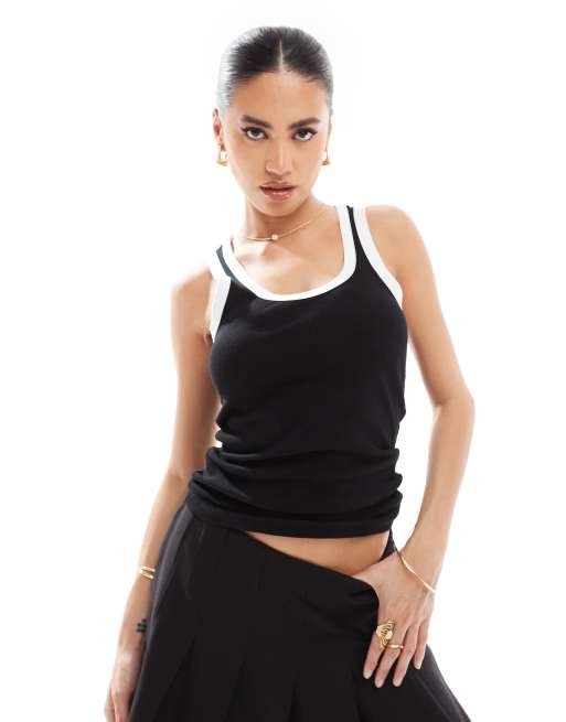 River Island - Canotta nera con scollo rotondo a contrasto