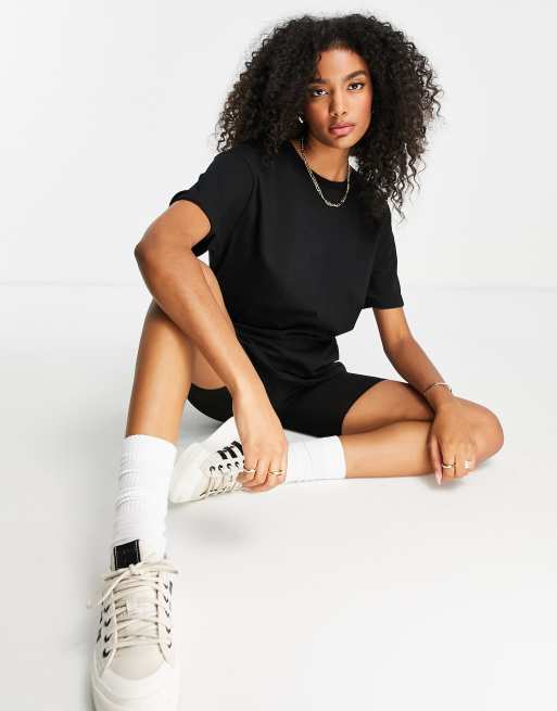 River Island - Completo nero con pantaloncini leggings e T-shirt boyfriend