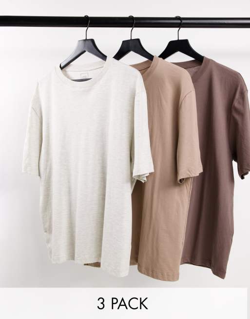 River Island - Confezione da 3 T-shirt oversize marrone/cammello/écru