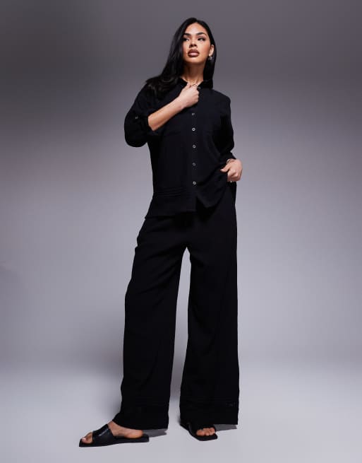 River Island - Coordinato con camicia nera in tessuto stropicciato