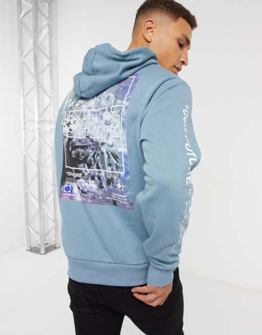 River Island - Felpa blu con cappuccio e stampa