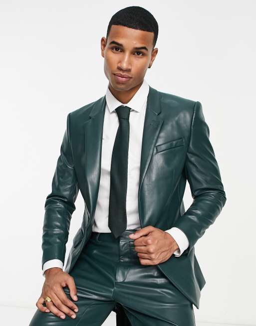 River Island - Giacca da abito in similpelle PU verde
