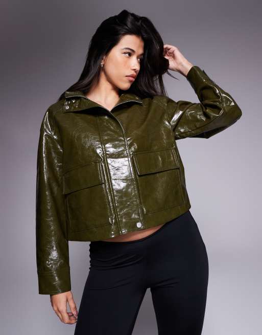River Island - Giacca kaki scuro in pelle sintetica
