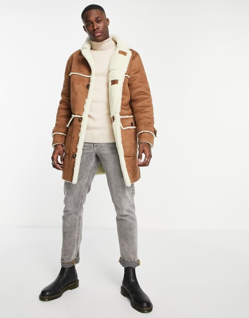 River Island - Giaccone scamosciata marrone effetto montone