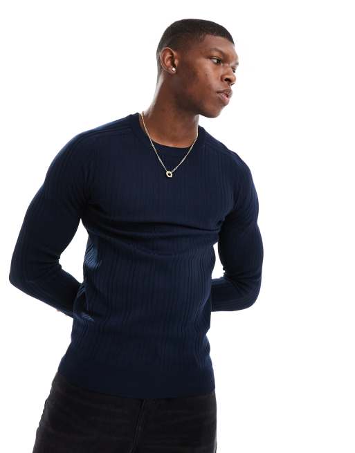 River Island - Maglietta attillata a maniche lunghe blu navy