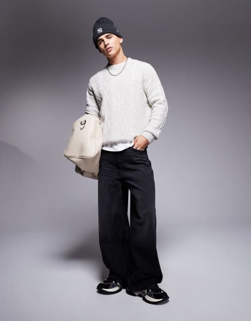 River Island - Maglione pesante grigio pietra lavorato a trecce