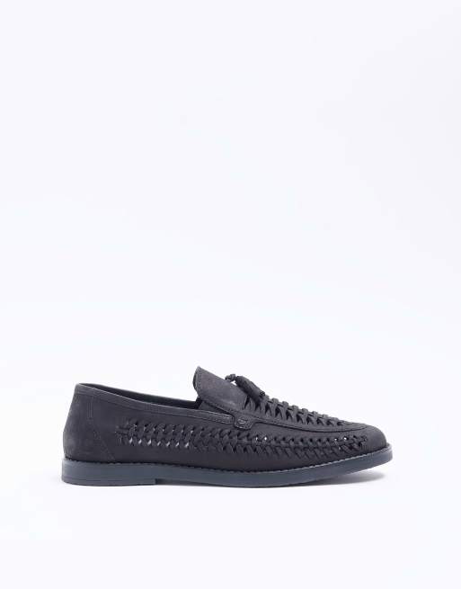 River Island - Mocassini neri intrecciati con nappe