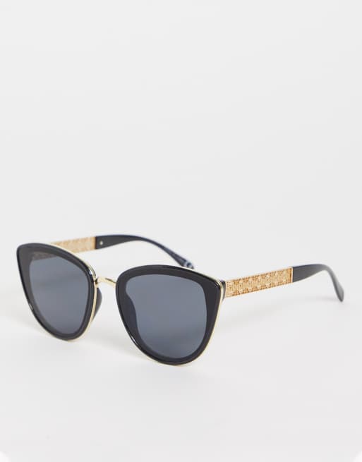 River Island - Occhiale da sole neri a occhi di gatto con stanghette a reticolo