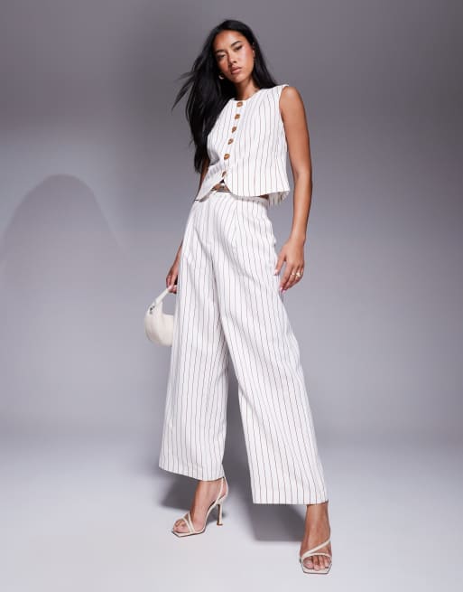 River Island - Pantaloni a fondo ampio a righe bianche