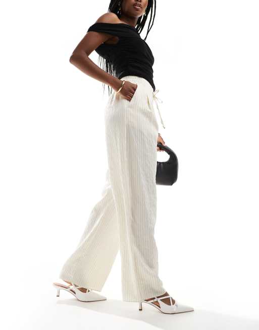 River Island - Pantaloni ampi crema a righe in popeline