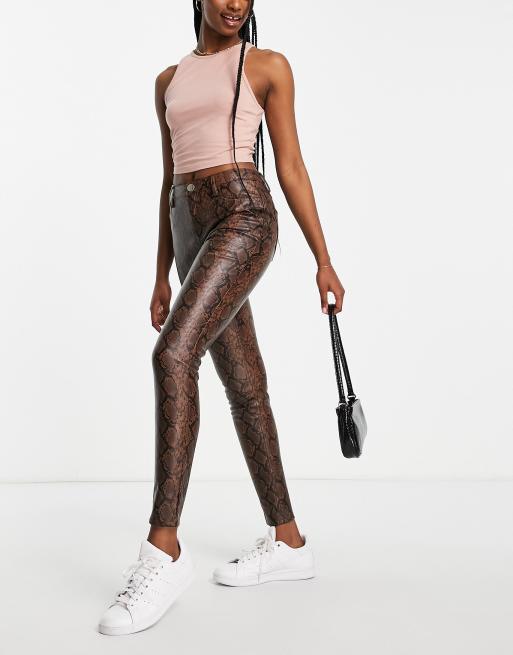 River Island - Pantaloni dritti in pelle sintetica pitonata marrone