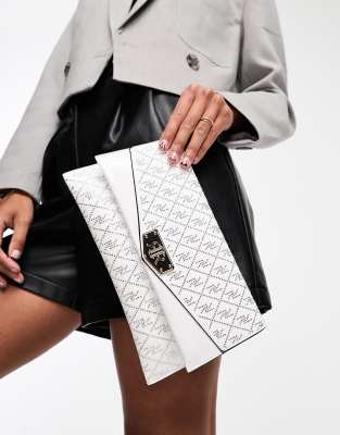 River Island - Pochette bianca con monogramma e tracolla in catenina