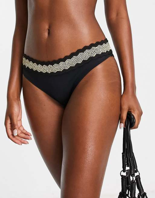 River Island - Slip bikini a vita alta nero con pizzo sangallo