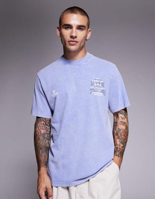 River Island - T-shirt slavata azzurra con stampa "Archive"