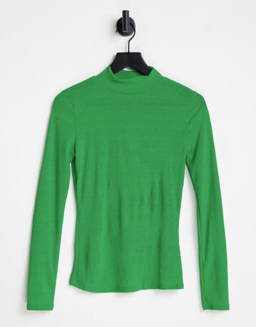River Island - Top a maniche lunghe in rete verde